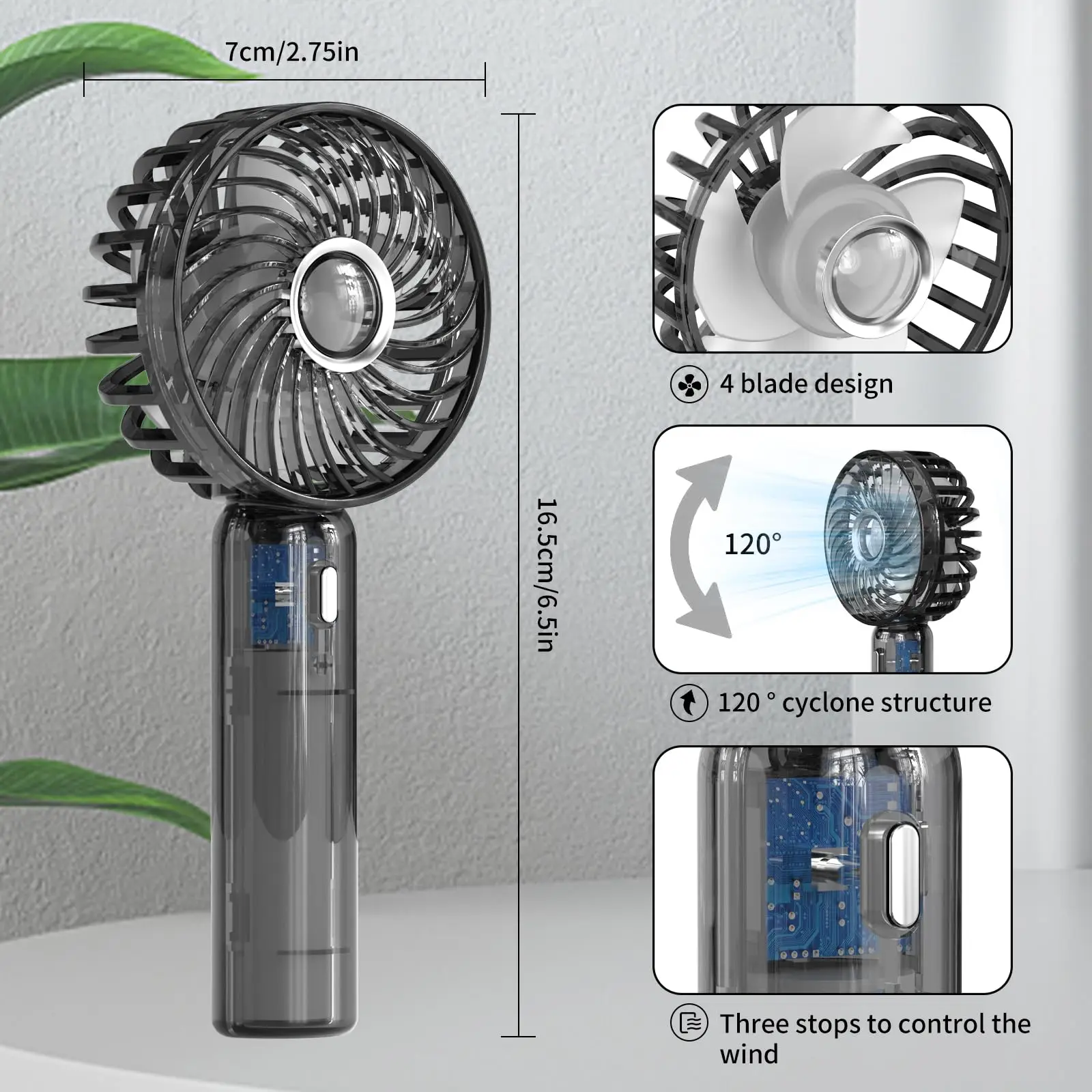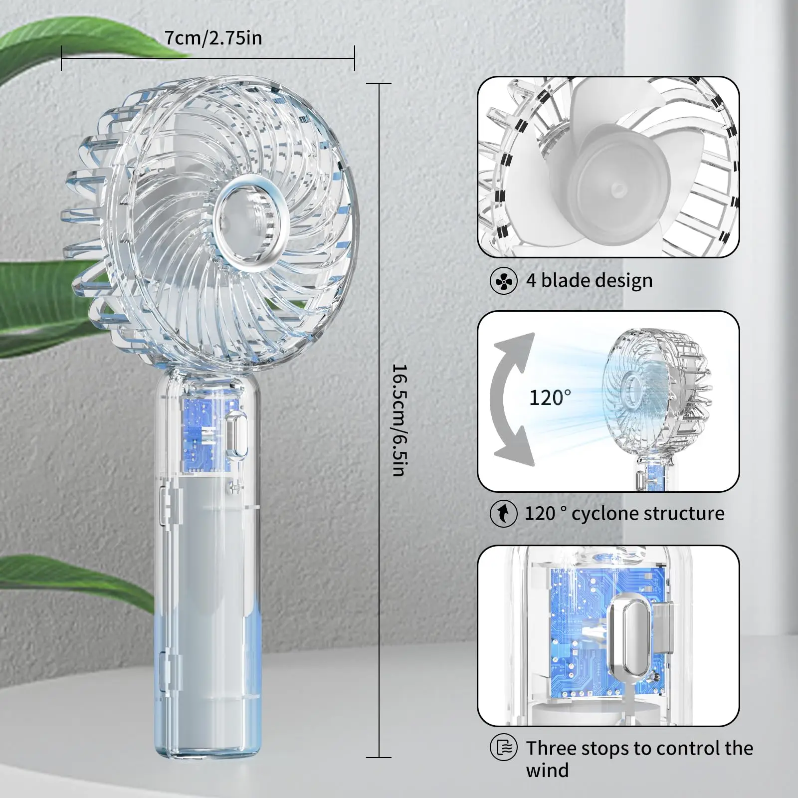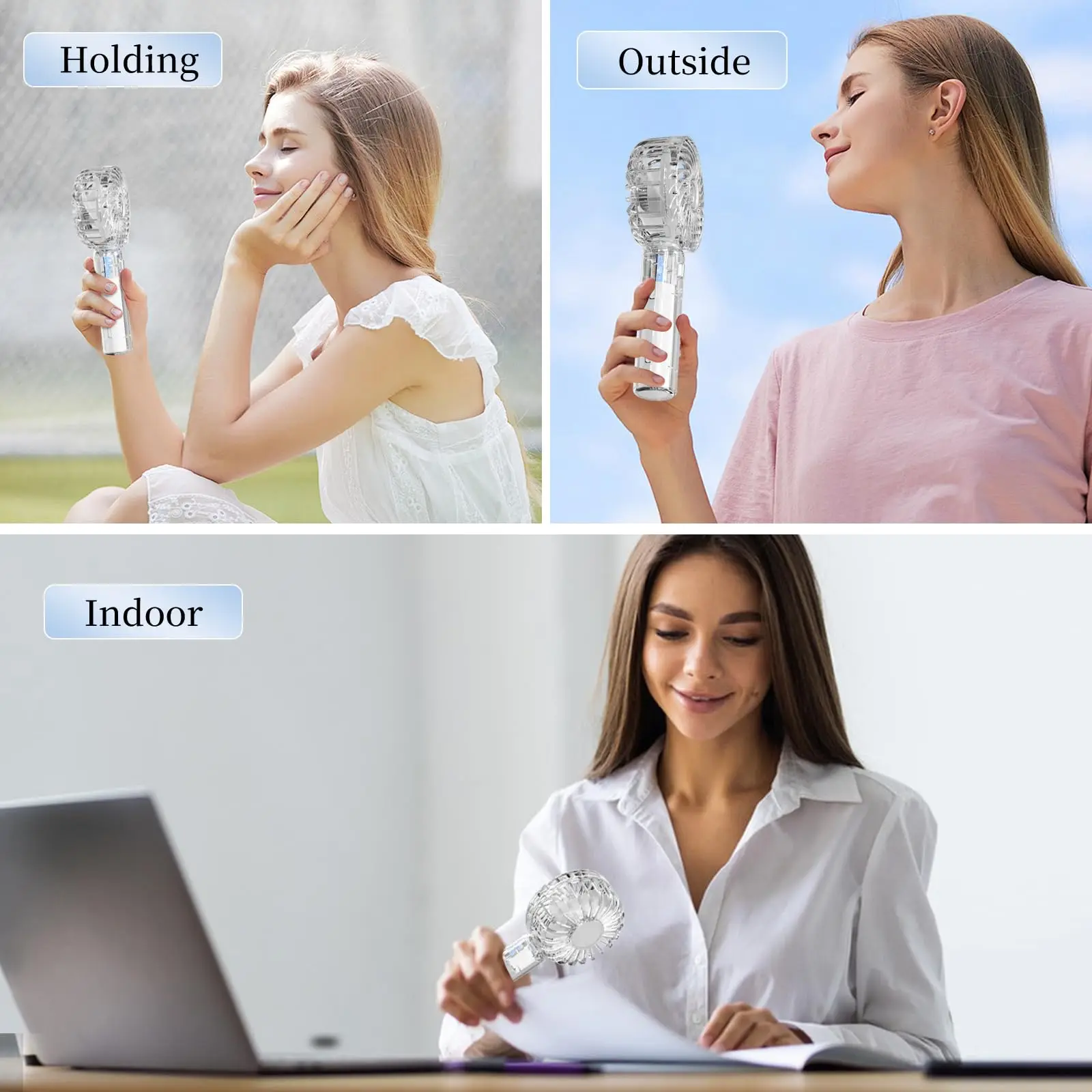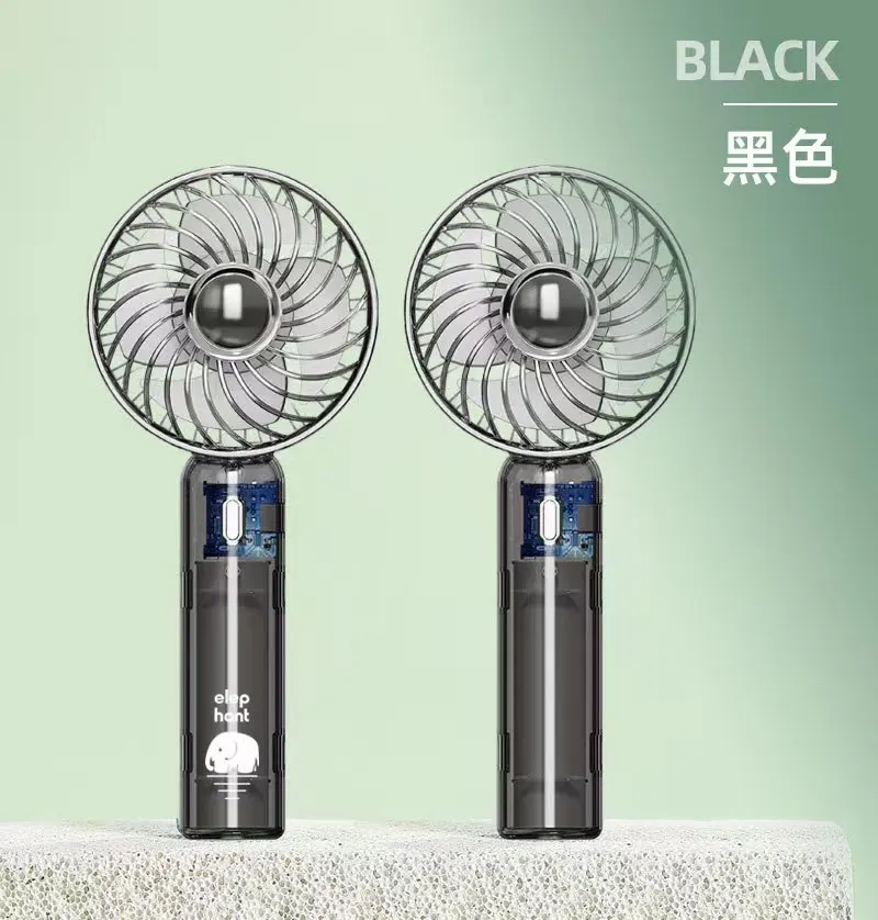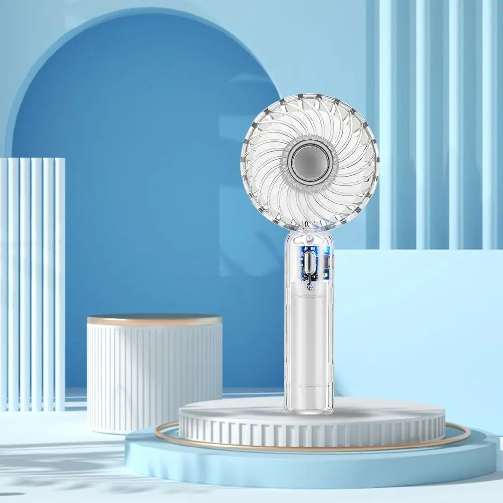 Portable handheld transparent mini fan rechargeable folding travel fan with portable pocket fan, small desktop fan, flashlight, suitable for travel and outdoor summer cooling, beach, travel