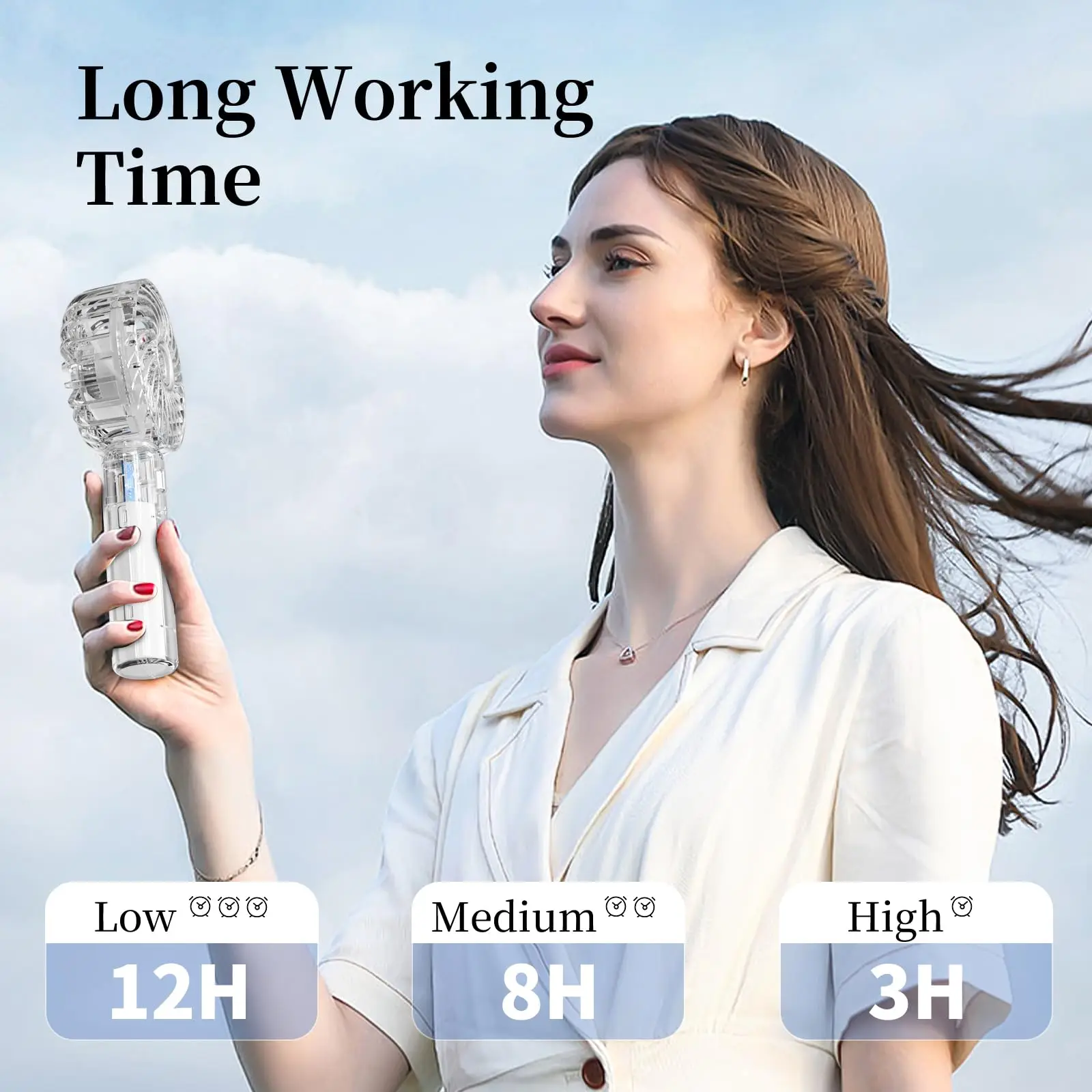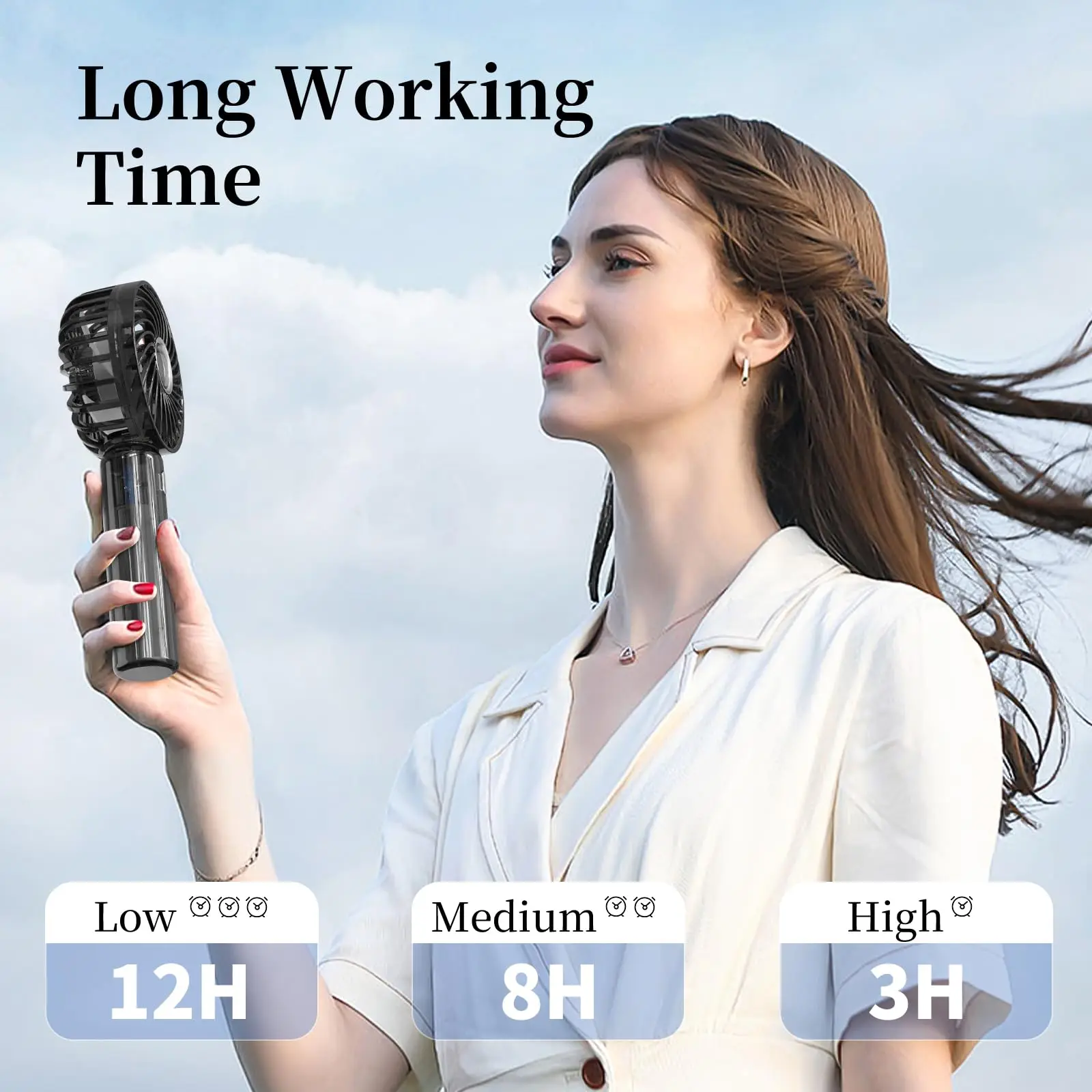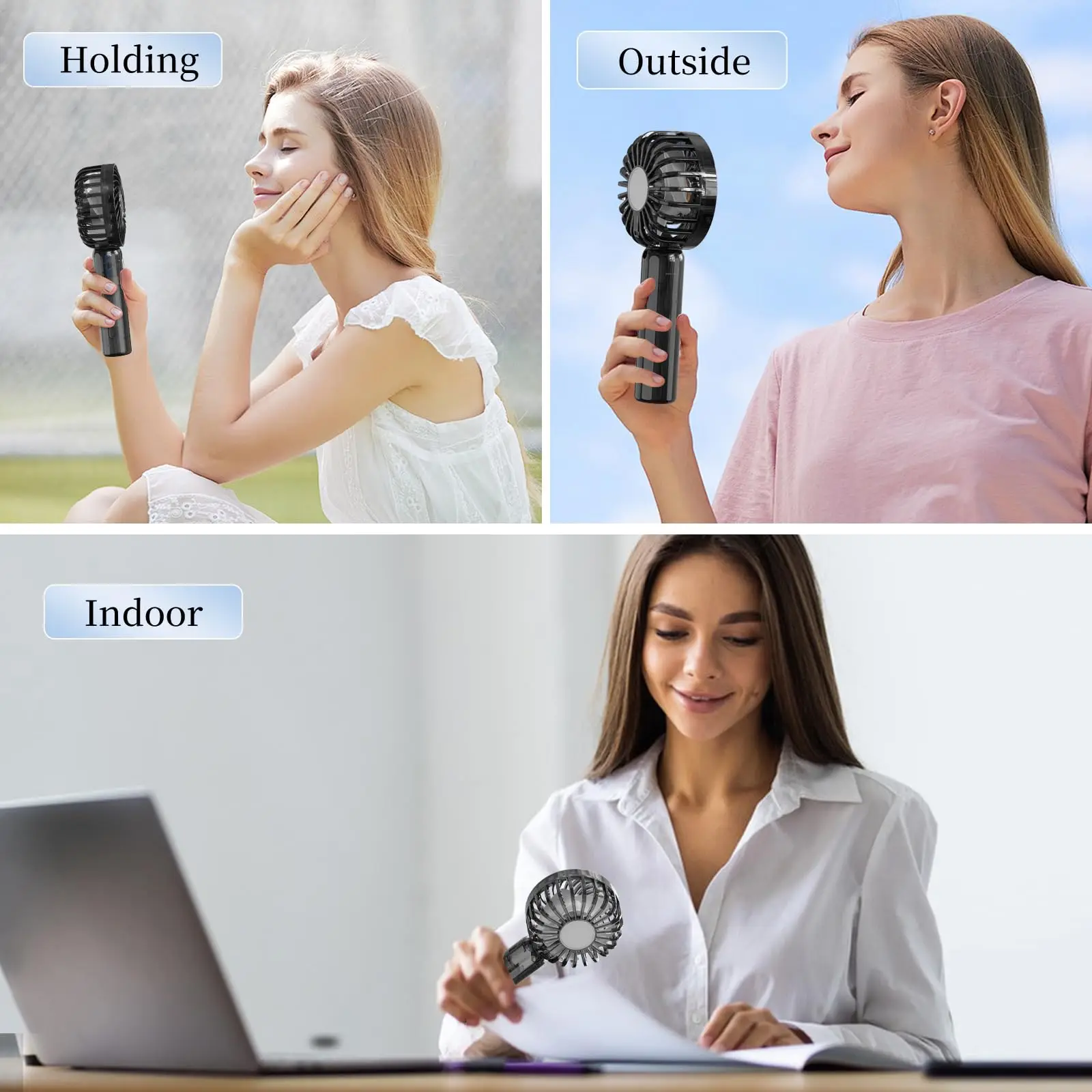 Portable handheld fan offers the ultimate cooling solution for your summer travels. This rechargeable folding fan easily fits in your pocket, making it ideal for the beach or outdoor trips. Use it as a handheld device or a desktop fan for a refreshing breeze wherever you go.