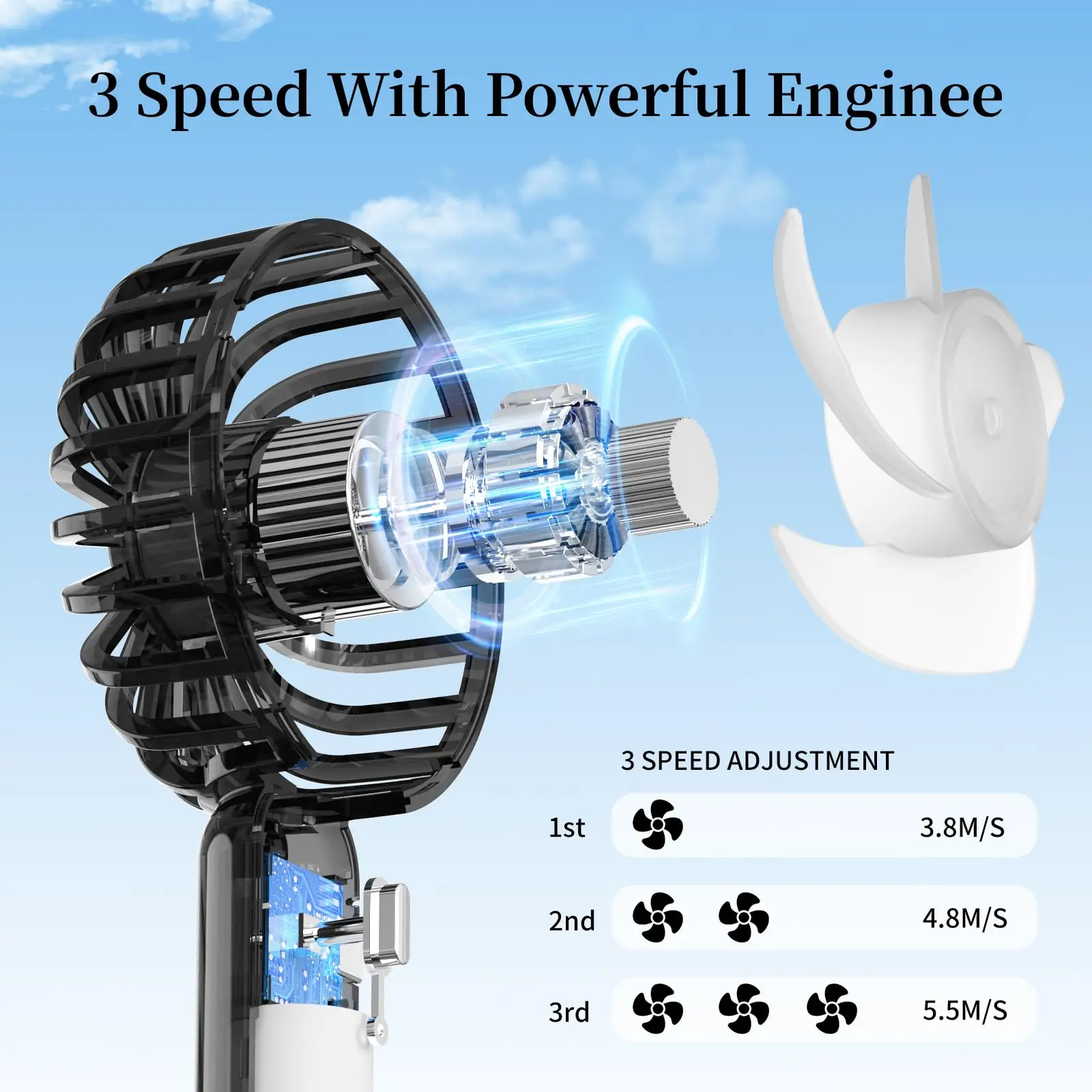 Portable handheld fan featuring a rechargeable folding design. This pocket fan is perfect for outdoor travel, beach trips, or desktop use. Stay refreshed everywhere today.
